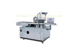 This machine adopts method of conveying bottles through big starwheel, to-and-fro tracking filling and three knives capping. It can automatically finish procedures such as bottle orienting, bottles conveying, filling, cap orienting, capping and etc. It can be equipped with glass pump, metal pump, ceramic pump or peristaltic pump as customer's request